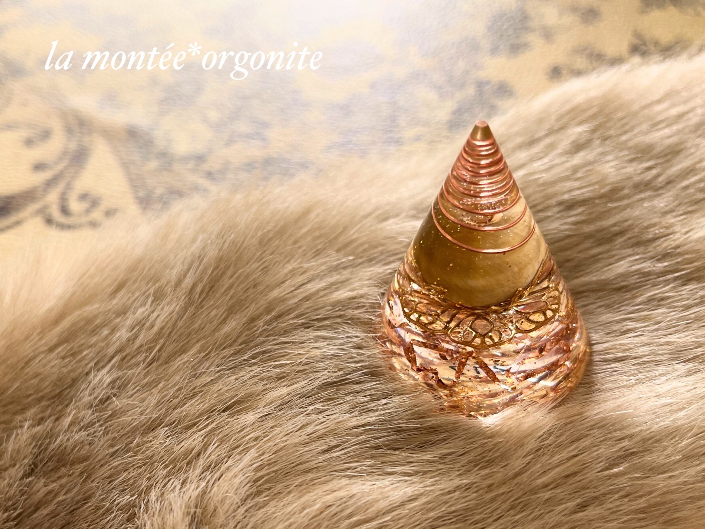 小さな袋などに入れて持ち歩くこともできる円錐形のミニオルゴナイトです。